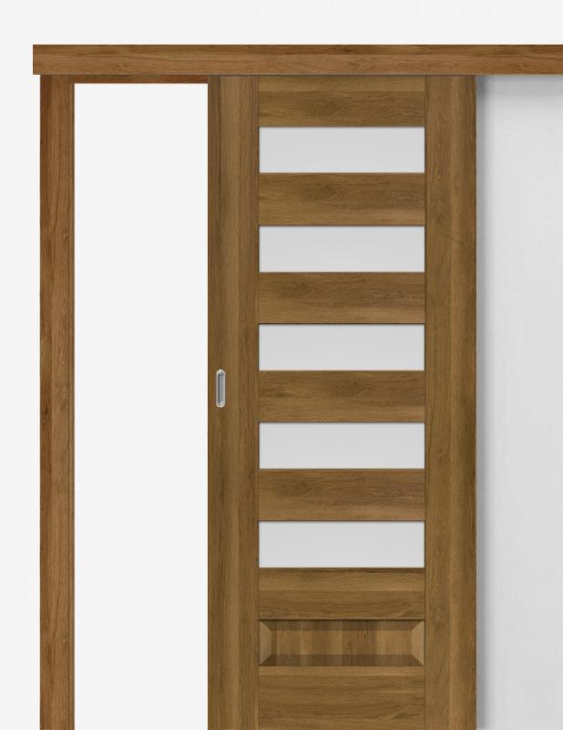 Itin funkcionali konstrukcija gali būti montuojama tiek tiesiai ant sienos, tiek naudojant reguliuojamą apdailą. Sieninę stumdomą sistemą galima komplektuoti vienvėrėms arba dvivėrėms durims. Galimos ovalios ir apvalios rankenos, kurias siūlome kelių spalvų versijomis. Jų montavimui naudojama moderni kablio spyna su raktu, užtikrinanti privatumą ir saugumą. Taip paruoštos stumdomos durys visų pirma yra labai funkcionalios.
