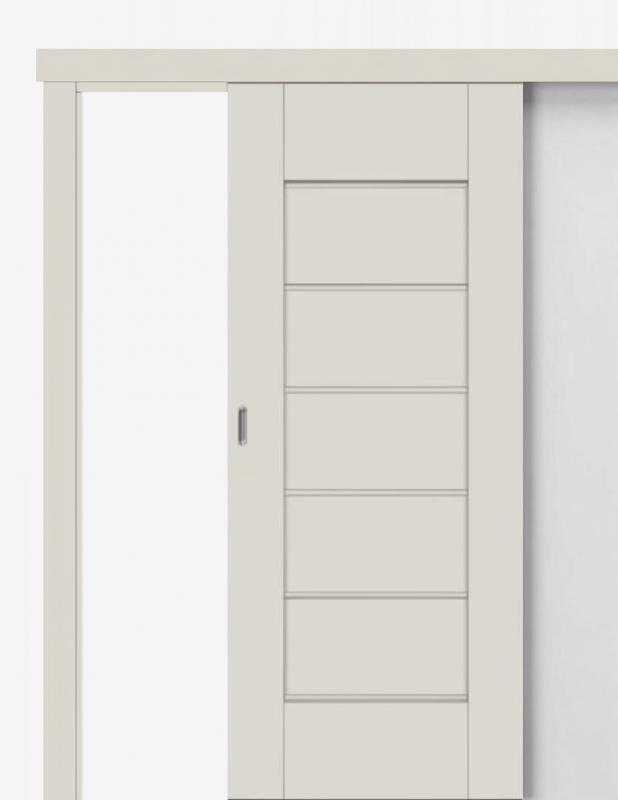 Itin funkcionali konstrukcija gali būti montuojama tiek tiesiai ant sienos, tiek naudojant reguliuojamą apdailą. Sieninę stumdomą sistemą galima komplektuoti vienvėrėms arba dvivėrėms durims. Galimos ovalios ir apvalios rankenos, kurias siūlome kelių spalvų versijomis. Jų montavimui naudojama moderni kablio spyna su raktu, užtikrinanti privatumą ir saugumą. Taip paruoštos stumdomos durys visų pirma yra labai funkcionalios.