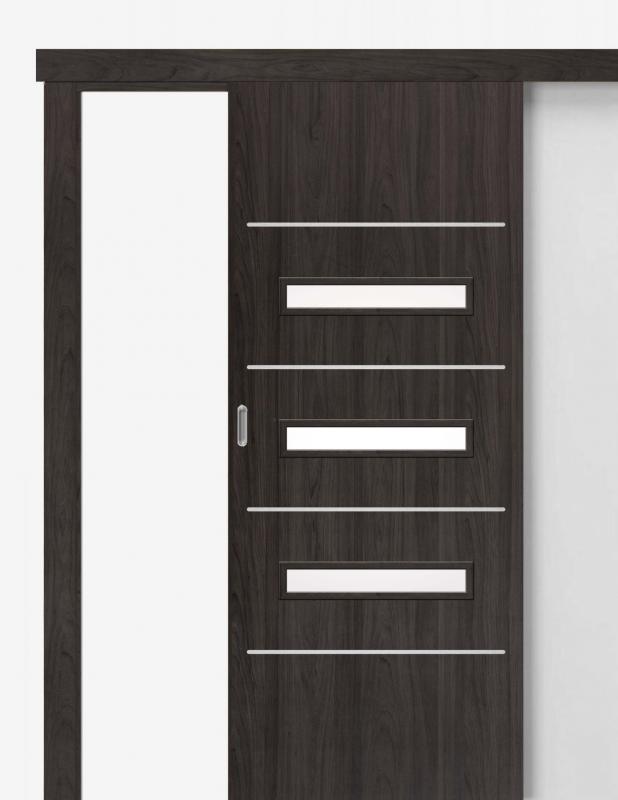 Itin funkcionali konstrukcija gali būti montuojama tiek tiesiai ant sienos, tiek naudojant reguliuojamą apdailą. Sieninę stumdomą sistemą galima komplektuoti vienvėrėms arba dvivėrėms durims. Galimos ovalios ir apvalios rankenos, kurias siūlome kelių spalvų versijomis. Jų montavimui naudojama moderni kablio spyna su raktu, užtikrinanti privatumą ir saugumą. Taip paruoštos stumdomos durys visų pirma yra labai funkcionalios.