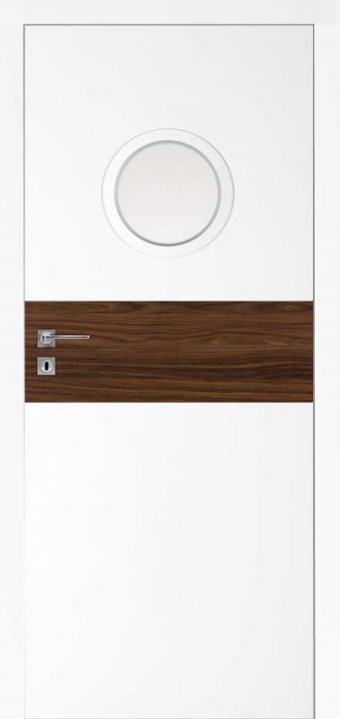 Durų varčios rėmas pagamintas iš spygliuočių medienos. Užpildas - perforuota medžio drožlių plokštė. Varčia baltos matinės spalvos, pasirenkant centrinės juostos dekorą. Varčios kraštas yra tokios pat spalvos kaip ir vidinės apdailos. Stiklas - matinis.