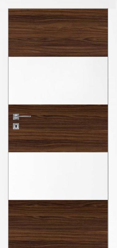 Durų varčios rėmas pagamintas iš spygliuočių medienos. Užpildas - perforuota medžio drožlių plokštė. Varčia baltos matinės spalvos, pasirenkant centrinės juostos dekorą. Varčios kraštas yra tokios pat spalvos kaip ir vidinės apdailos.