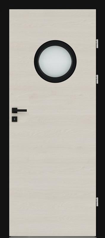 Durų varčios karkasas pagamintas iš medžio pagrindo plokštės, sutvirtintos fanera, užpildas perforuota medžio drožlių plokštė. Durų varčios paviršius padengtas laminuota, sinchronine 4 mm storio CLEAF plokšte. Stiklas - matinis.