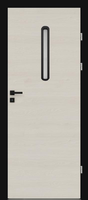 Durų varčios karkasas pagamintas iš medžio pagrindo plokštės, sutvirtintos fanera, užpildas perforuota medžio drožlių plokštė. Durų varčios paviršius padengtas laminuota, sinchronine 4 mm storio CLEAF plokšte. Stiklas - matinis.