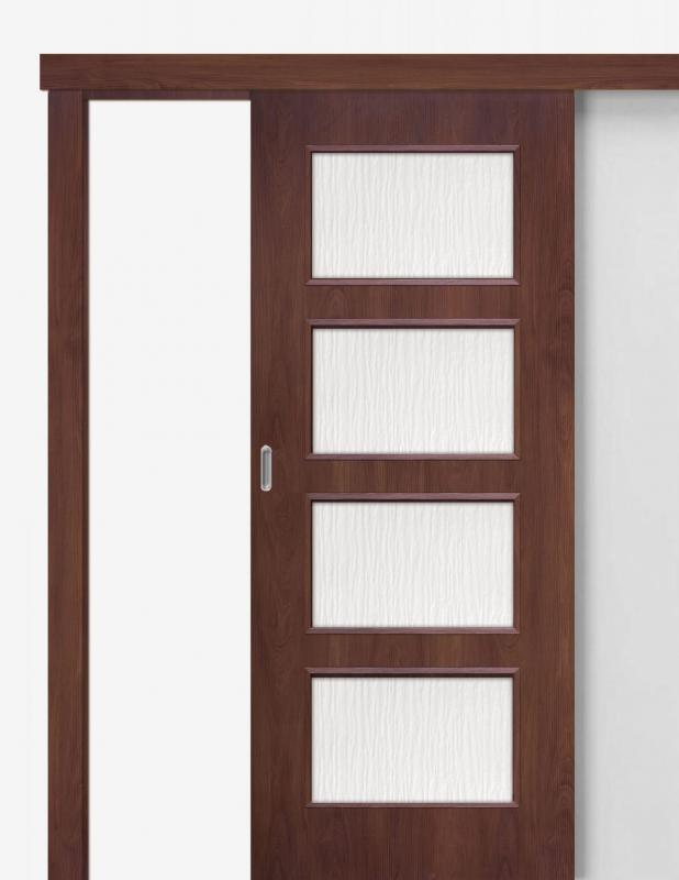 Itin funkcionali konstrukcija gali būti montuojama tiek tiesiai ant sienos, tiek naudojant reguliuojamą apdailą. Sieninę stumdomą sistemą galima komplektuoti vienvėrėms arba dvivėrėms durims. Galimos ovalios ir apvalios rankenos, kurias siūlome kelių spalvų versijomis. Jų montavimui naudojama moderni kablio spyna su raktu, užtikrinanti privatumą ir saugumą. Taip paruoštos stumdomos durys visų pirma yra labai funkcionalios.