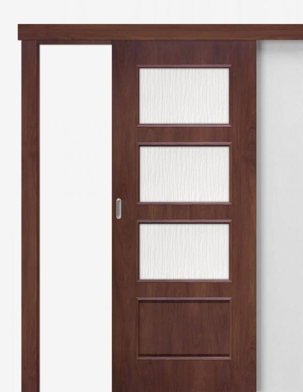 Itin funkcionali konstrukcija gali būti montuojama tiek tiesiai ant sienos, tiek naudojant reguliuojamą apdailą. Sieninę stumdomą sistemą galima komplektuoti vienvėrėms arba dvivėrėms durims. Galimos ovalios ir apvalios rankenos, kurias siūlome kelių spalvų versijomis. Jų montavimui naudojama moderni kablio spyna su raktu, užtikrinanti privatumą ir saugumą. Taip paruoštos stumdomos durys visų pirma yra labai funkcionalios.