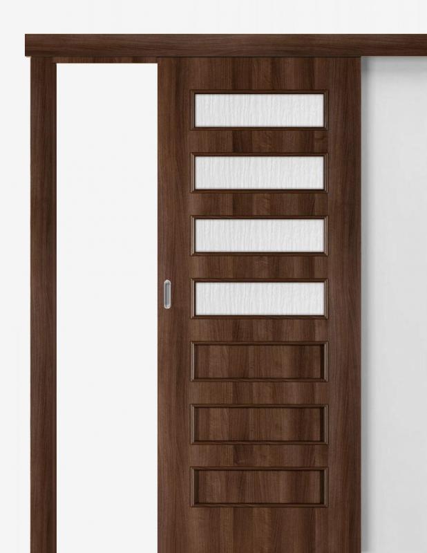 Itin funkcionali konstrukcija gali būti montuojama tiek tiesiai ant sienos, tiek naudojant reguliuojamą apdailą. Sieninę stumdomą sistemą galima komplektuoti vienvėrėms arba dvivėrėms durims. Galimos ovalios ir apvalios rankenos, kurias siūlome kelių spalvų versijomis. Jų montavimui naudojama moderni kablio spyna su raktu, užtikrinanti privatumą ir saugumą. Taip paruoštos stumdomos durys visų pirma yra labai funkcionalios.