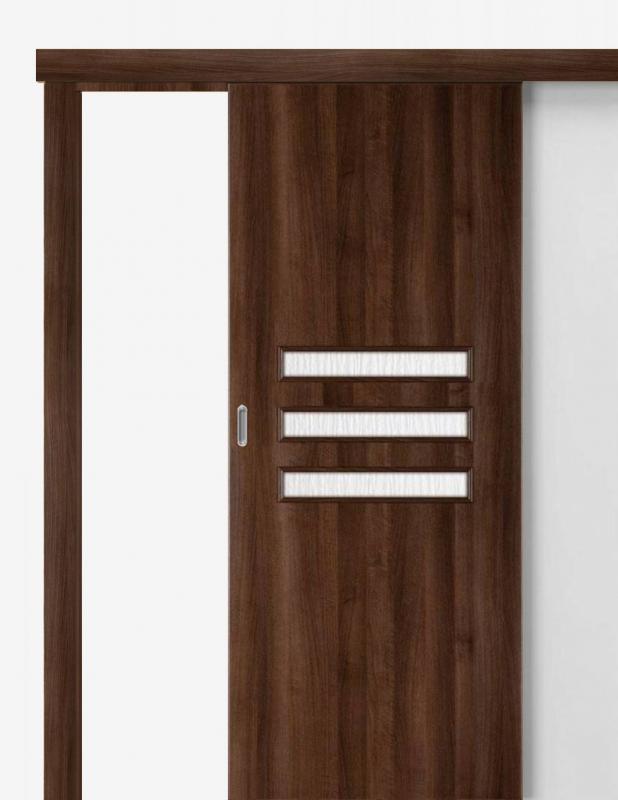 Itin funkcionali konstrukcija gali būti montuojama tiek tiesiai ant sienos, tiek naudojant reguliuojamą apdailą. Sieninę stumdomą sistemą galima komplektuoti vienvėrėms arba dvivėrėms durims. Galimos ovalios ir apvalios rankenos, kurias siūlome kelių spalvų versijomis. Jų montavimui naudojama moderni kablio spyna su raktu, užtikrinanti privatumą ir saugumą. Taip paruoštos stumdomos durys visų pirma yra labai funkcionalios.