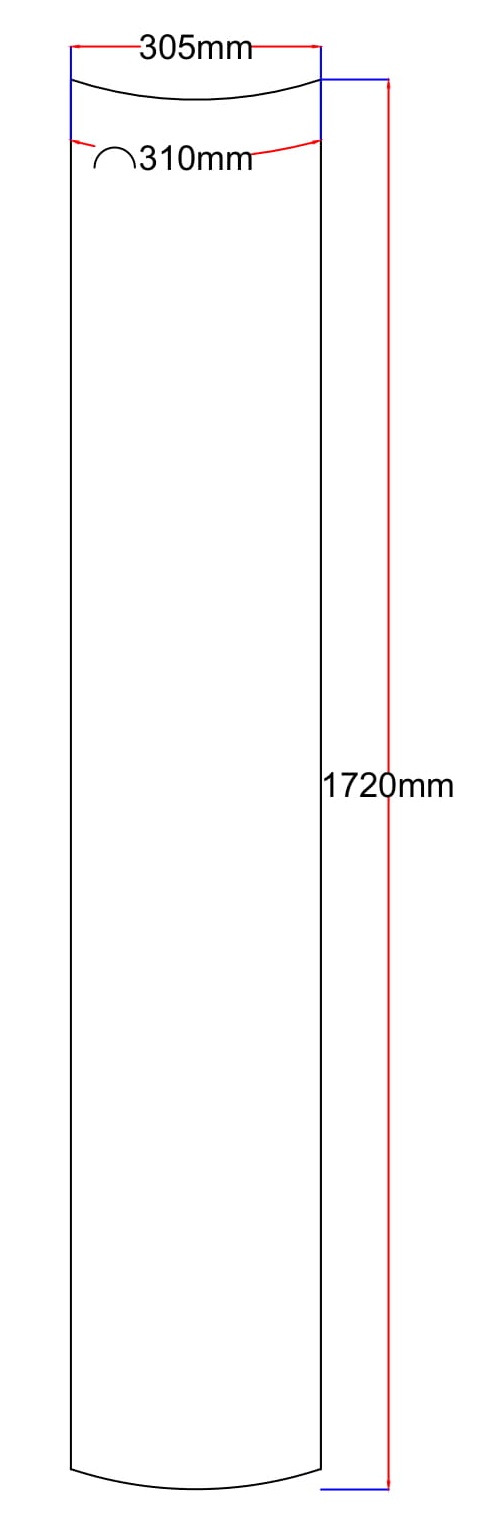 Dušo kabinos šoninis stiklas lenktas 305x1720 (lenkta dalis 310