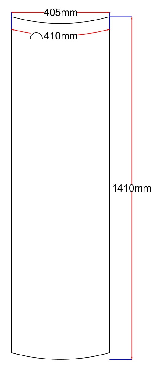 Matmenys: 405x1410 mm (lenkta dalis 410 mm)