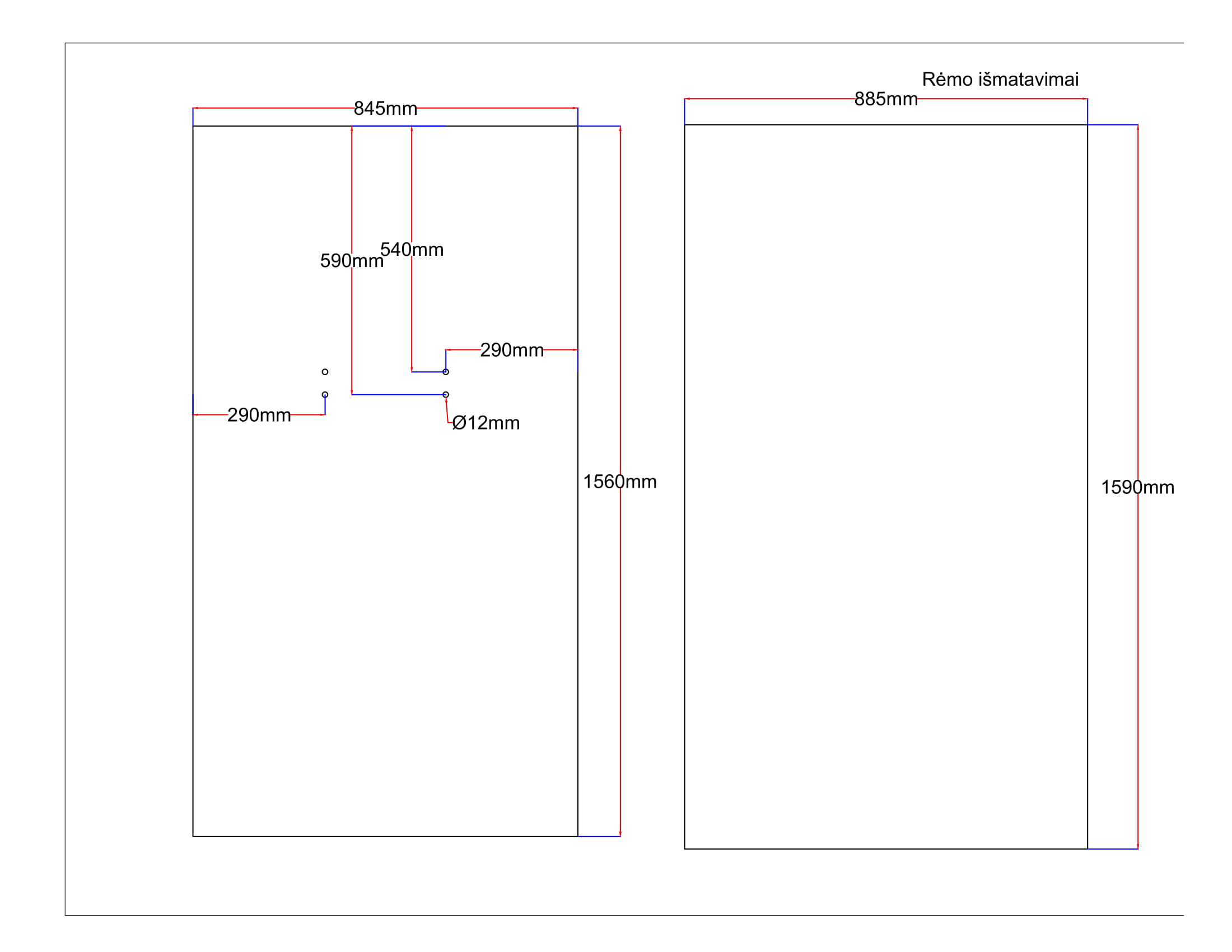 Matmenys: 845x1560 mm, stiklas su rėmu, kurio matmenys 885x1590 mm