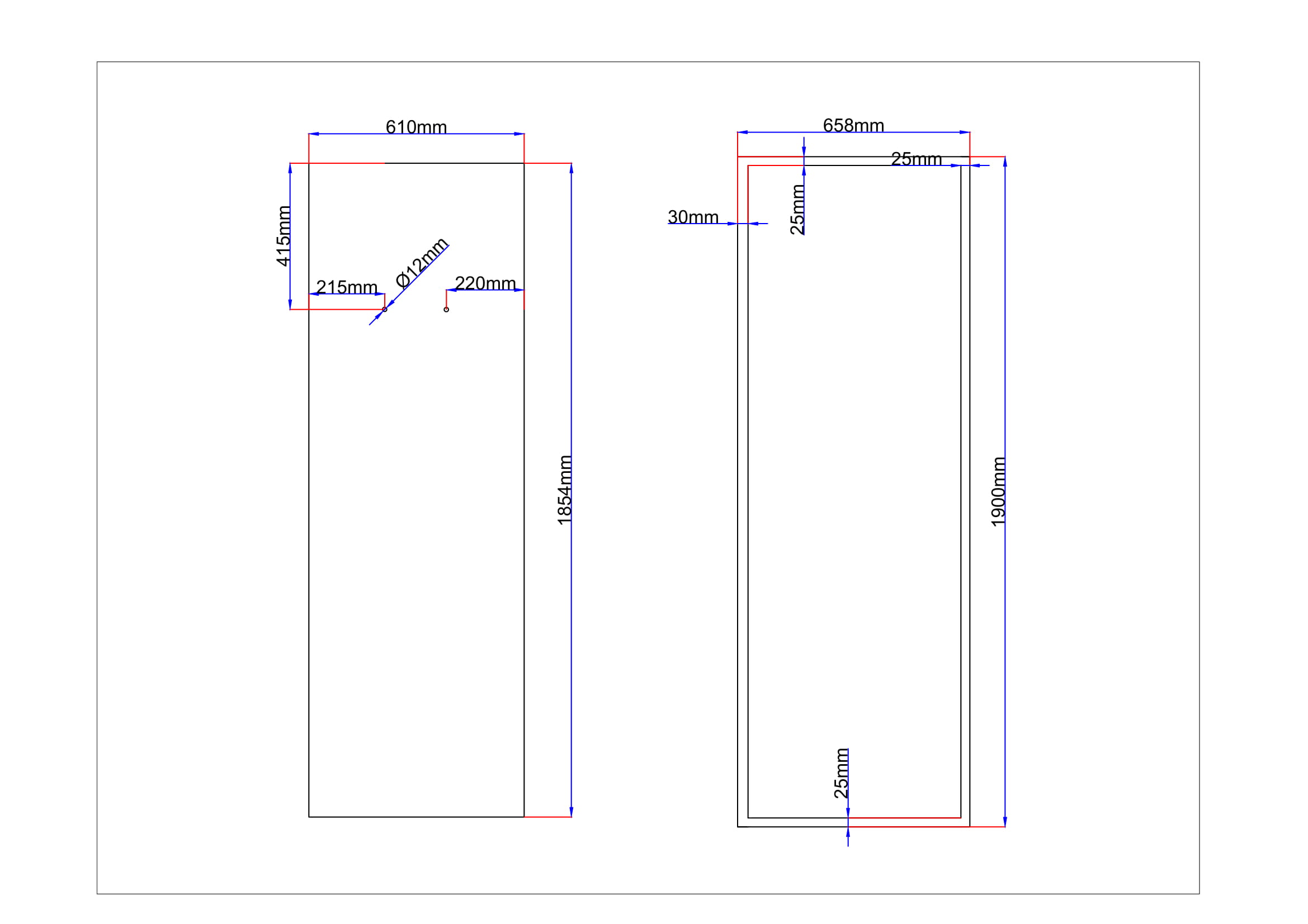 Dušo kabinos galinis stiklas 610x1854 juodas