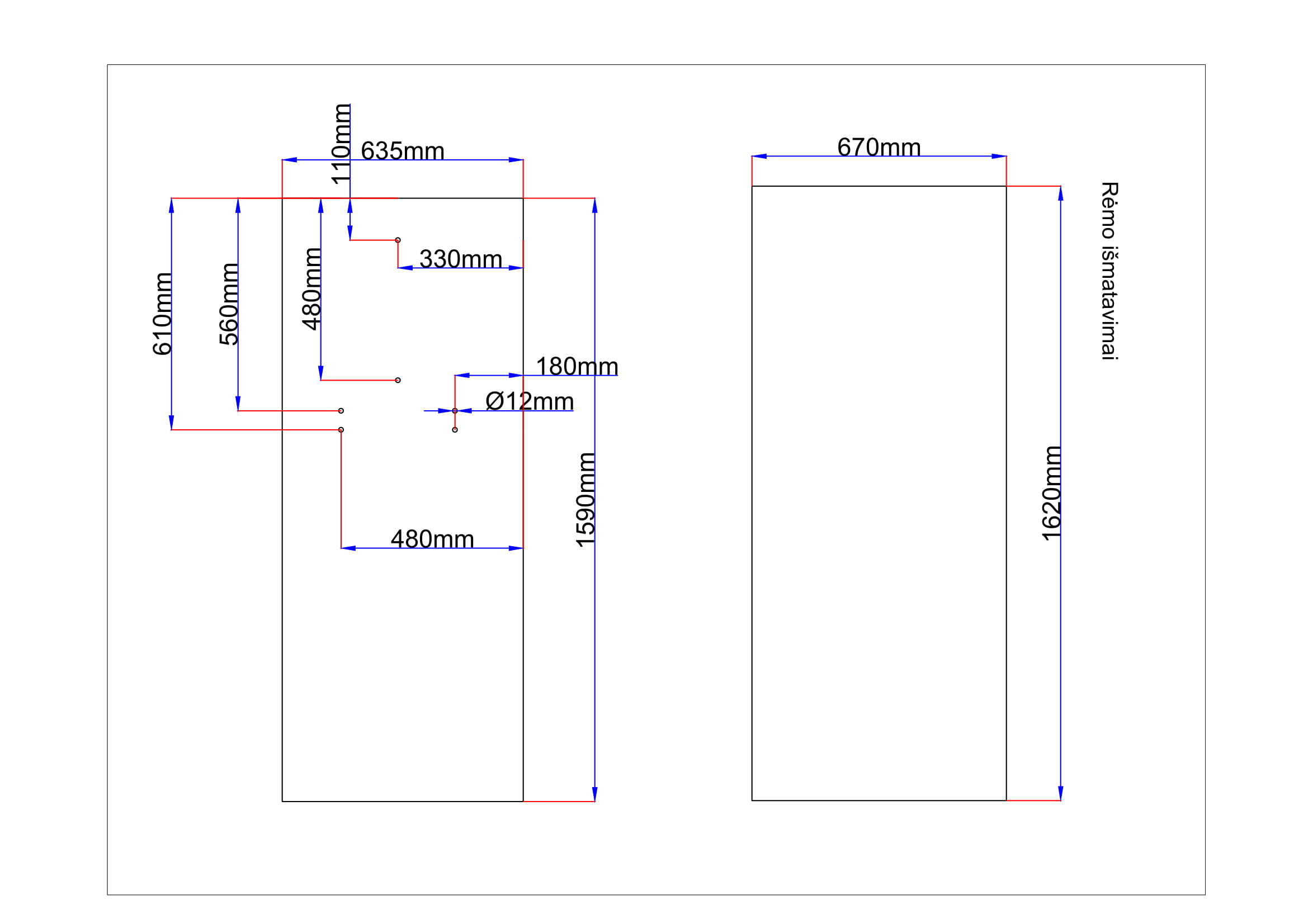 Dušo kabinos galinis stiklas 635x1590 juodas