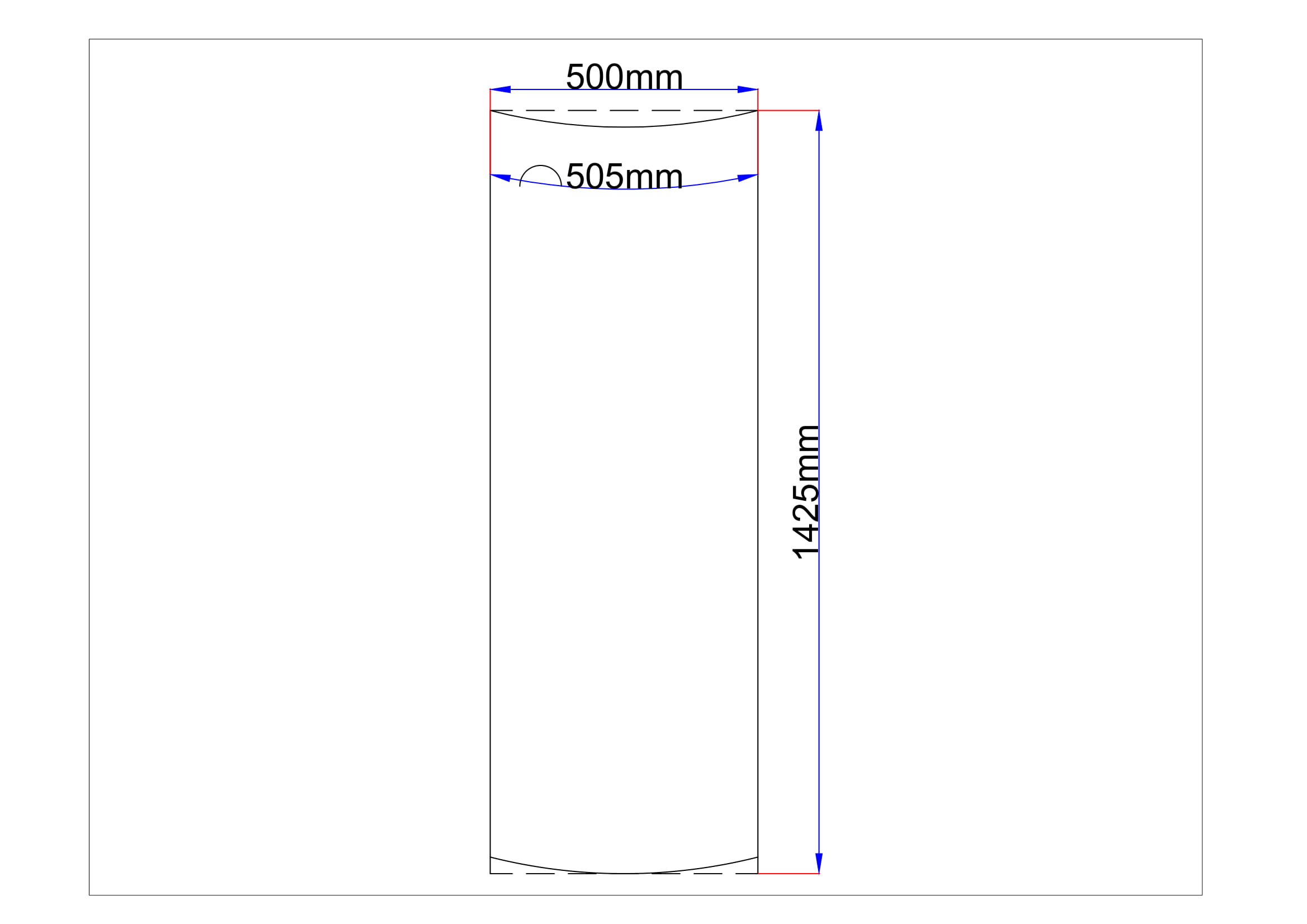 Dušo kabinos šoninis stiklas lenktas 500x1425 mm
