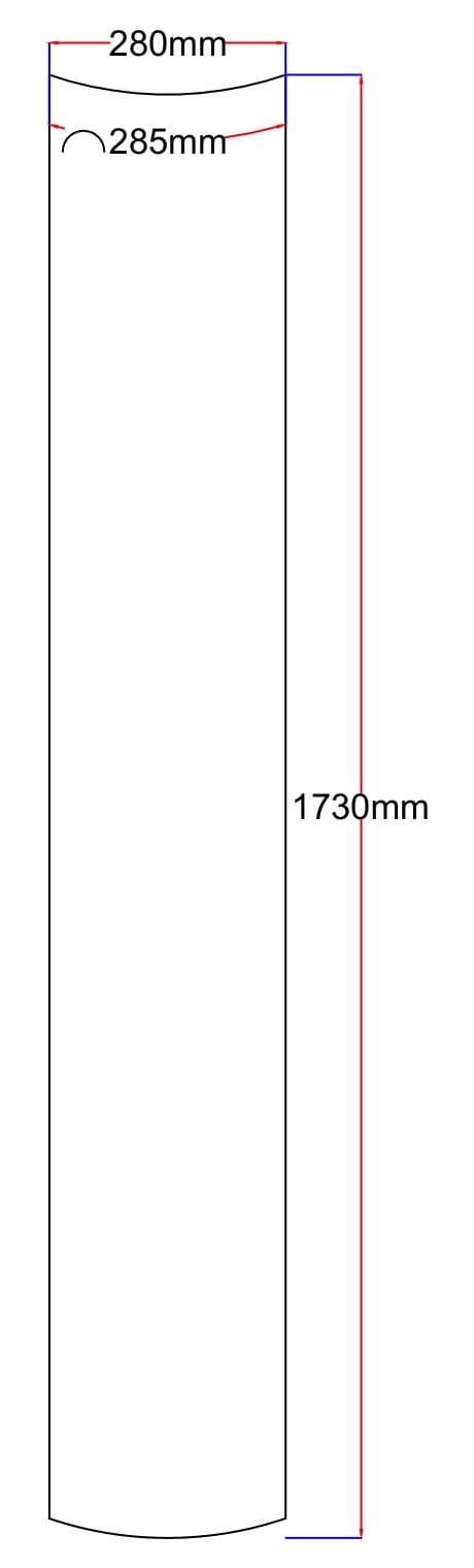 Dušo kabinos šoninis stiklas lenktas 280x1730 (lenkta dalis 285
