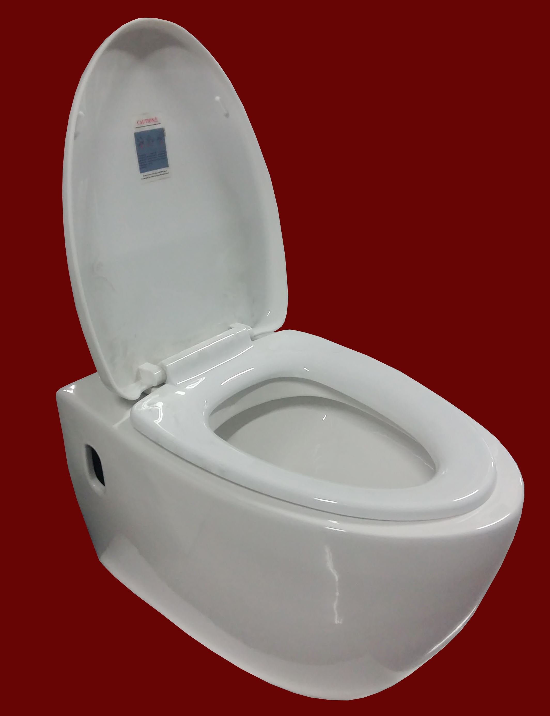 Pakabinamas klozetas su lėtai nusileidžiančiu dangčiu.