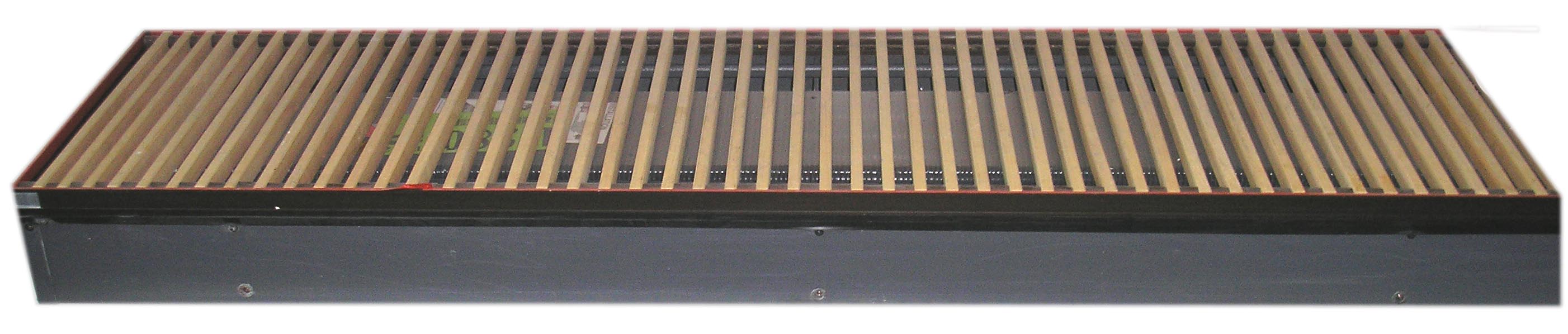 Grindyse montuojamas konvektorius su ventiliatoriumi. Tai idealus šildymo sprendimas patalpoms su stiklinėmis sienomis, vitrininiais langais, žemomis palangėmis, ir t.t.. Nepamainomi ties išėjimais į tersasą ar balkoną. Dėka nedidelio aukščio (nuo 9 cm) jie gali būti montuojami net perdangose tarp aukštų. Beveik nepastebimi bet kokiame interjere, matomos tik pritaikytos prie grindų dangos grotelės. Mini-Canal prietaisai gali būti naudojami didelių langų apšildymui ir jungiami į bendrą sistemą su kitų modelių šildymo prietaisais, o didesnių matmenų ir galios prietaisai naudojami kaip vienintelis šilumos šaltinis patalpoje. Matmenys 1900 (ilgis) x 420 (plotis) x 150 (aukštis). |