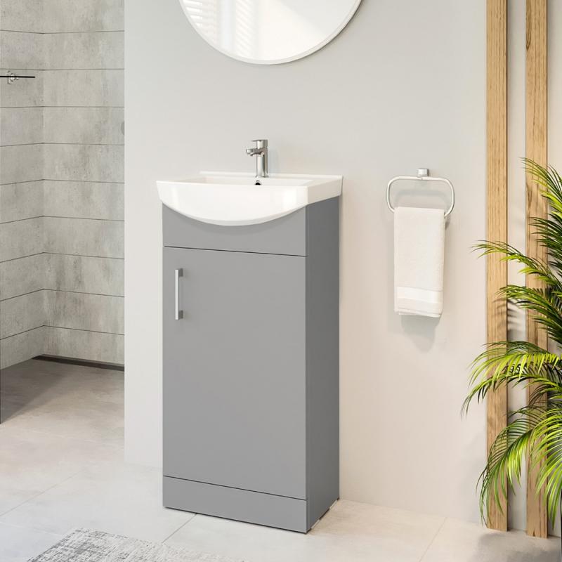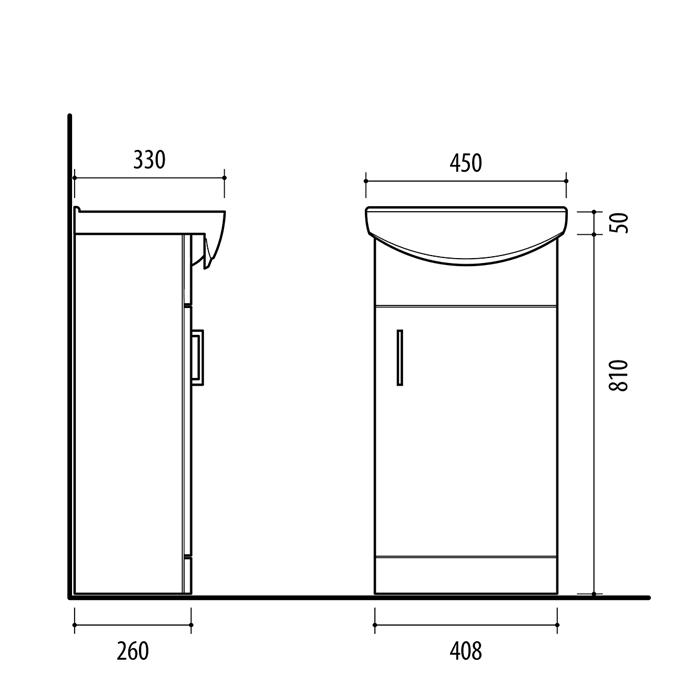 Pastatoma vonios spintelė su durelėm. Spintelė parduodama kartu su praustuvu RIVA45. Sifonas ir vandens maišytuvas į komplektaciją neįeina.