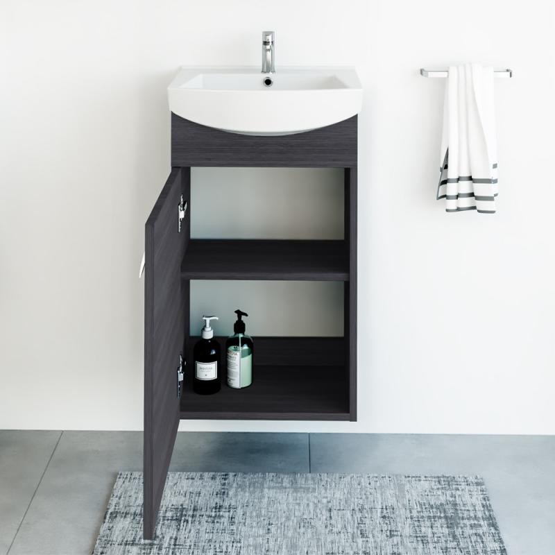 Ši kompaktiška, estetiška ir funkcionali vonios kambario spintelė su praustuvu sukurta patogiam kasdieniam naudojimui. Tobulai subalansuotas dydis suteikia galimybę ją pakabinti net ir pačioje mažiausioje erdvėje, o minimalistinė forma leidžia spintelę pritaikyti įvairaus stiliaus interjere. Pakabinamos konstrukcijos dizainas gali sumaniai pasitarnauti išnaudojant kiekvieną jūsų vonios kambario centimetrą. Spintelėje įmontuoti švelniai užsidarantys lankstai, kurių dėka durelės varstomos itin tyliai ir sklandžiai. Šią baldų furnitūrą ne tik malonu naudoti – ji taip pat pasižymi ilgesniu naudojimo laikotarpiu, lyginant su įprasta furnitūra. Be to, baldo gamybos metu lankstai yra ne įgręžiami, o įpresuojami – tokiu būdu įtvirtinami tiksliai ir patvariai. Tai ypač svarbu, nes vonios baldai yra intensyviai eksploatuojami, todėl privalo būti patvarūs. Spintelėje rasite reguliuojamo aukščio lentynėlę, kuri gali padėti patogiai susidėti įvairių dydžių vonios reikmenis ir jų pakuotes. Spintelė pagaminta iš kokybiškų medžiagų, kurios yra lengvai prižiūrimos, pasitelkiant įprastas valymo priemones. Sonoma Oak rašto laminatas gali padėti sukurti gaivaus ir šviesaus vonios kambario įspūdį.