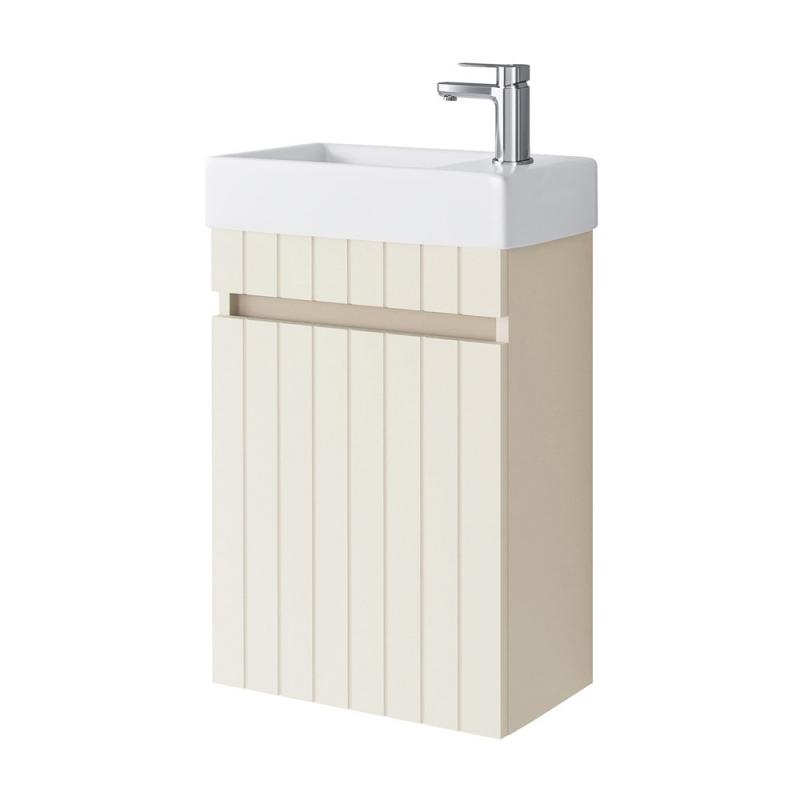 Kompaktiškos formos keraminis praustuvas. Praustuvas gali būti tvirtinamas ant baldo dvejomis padėtimis (skylė maišytuvui gali būti praustuvo dešinėje arba kairėje pusėje)