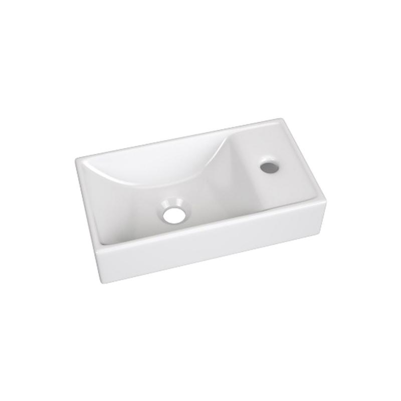Kompaktiškos formos keraminis praustuvas. Praustuvas gali būti tvirtinamas ant baldo dvejomis padėtimis (skylė maišytuvui gali būti praustuvo dešinėje arba kairėje pusėje)