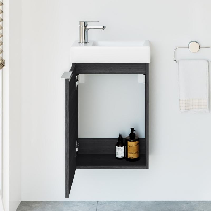 MAŽO VONIOS KAMBARIO IŠŠŪKIS. Su juo susidūrėte ir Jūs? Siūlome kompaktišką sprendimą: praustuvas ir vonios spintelė ypač mažų matmenų. Minimalistinė baldo forma leidžia spintelę pritaikyti įvairiuose interjeruose.
