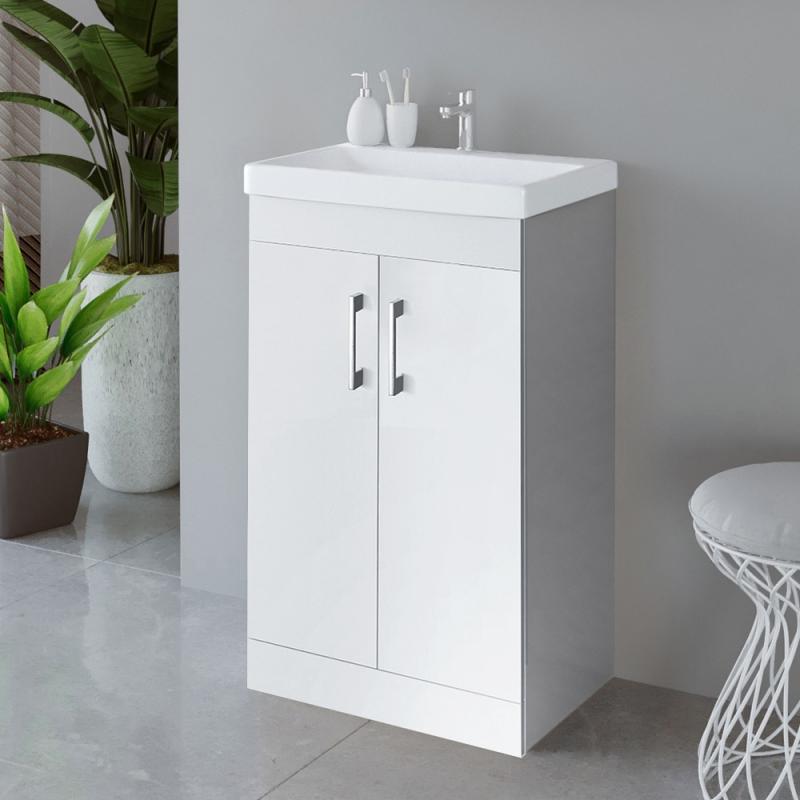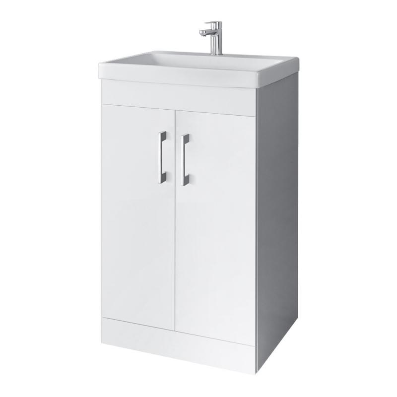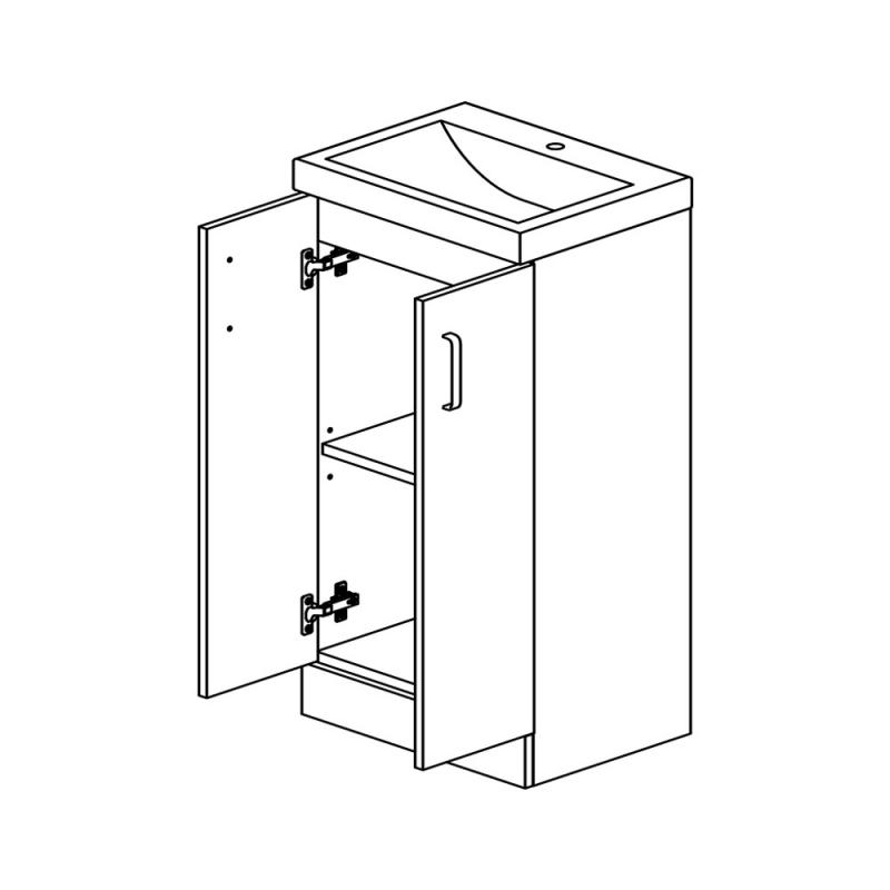Pastatoma vonios spintelė su dviem durelėm. Spintelė parduodama kartu su praustuvu. Sifonas ir vandens maišytuvas į komplektaciją neįeina.