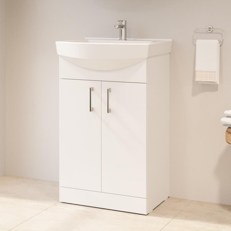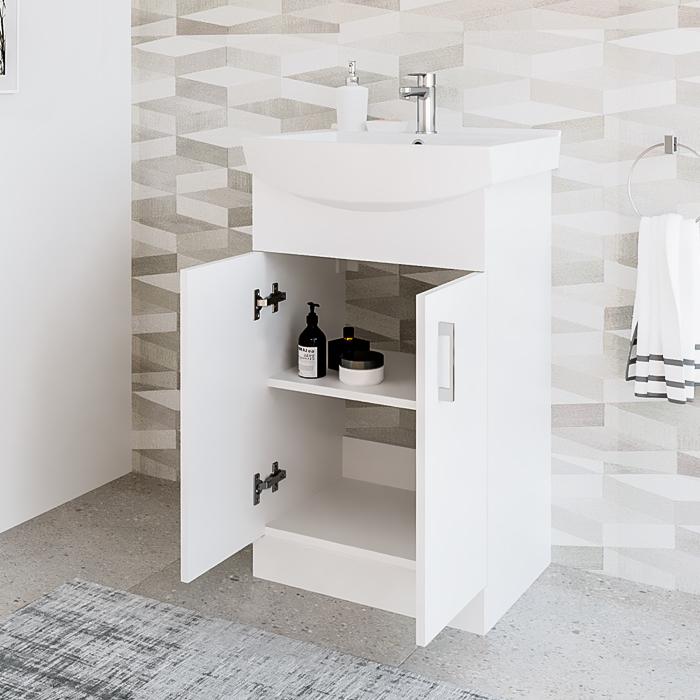 Pastatoma vonios spintelė su dviem durelėm. Spintelė parduodama kartu su praustuvu. Sifonas ir vandens maišytuvas į komplektaciją neįeina.