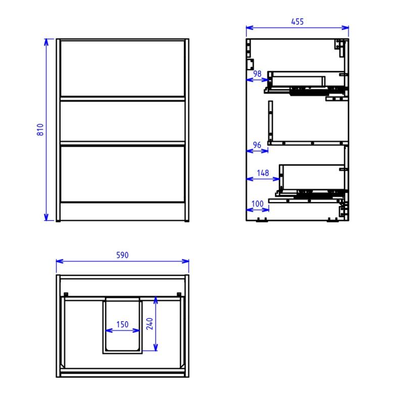 590 x 810 x 455 mm (plotis, aukštis, gylis)