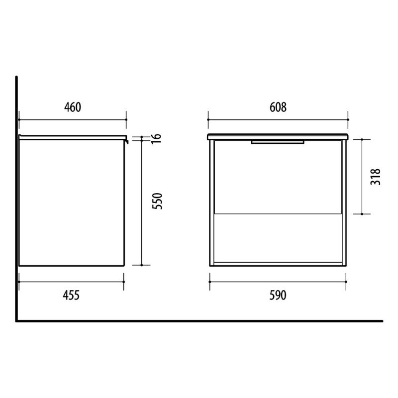 608 x 175 x 460 mm (plotis, aukštis, gylis)