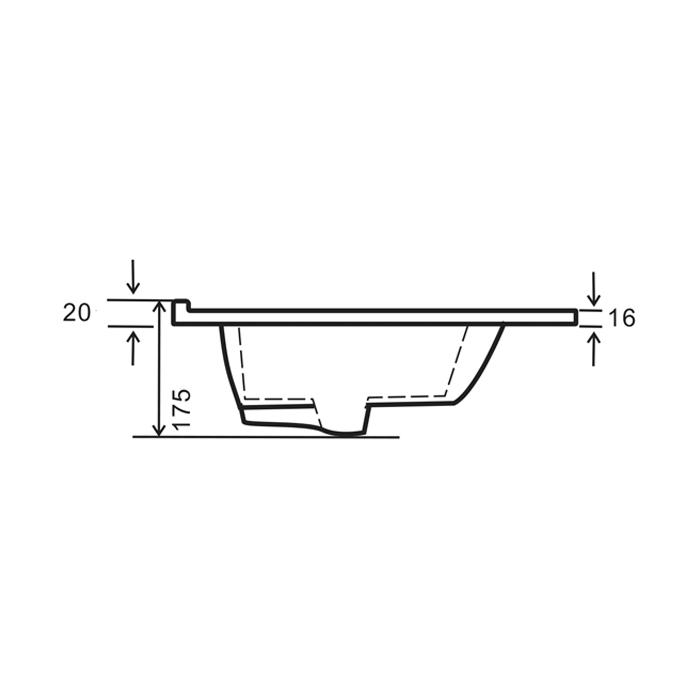 Šiuolaikiškos formos keraminis praustuvas su persipylimo kanalėliu ir paaukštinta briauna prie sienos