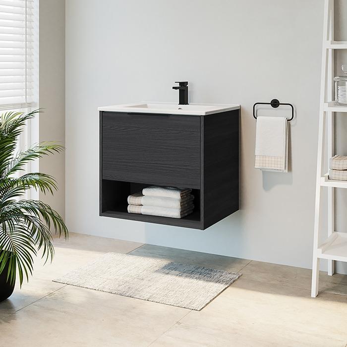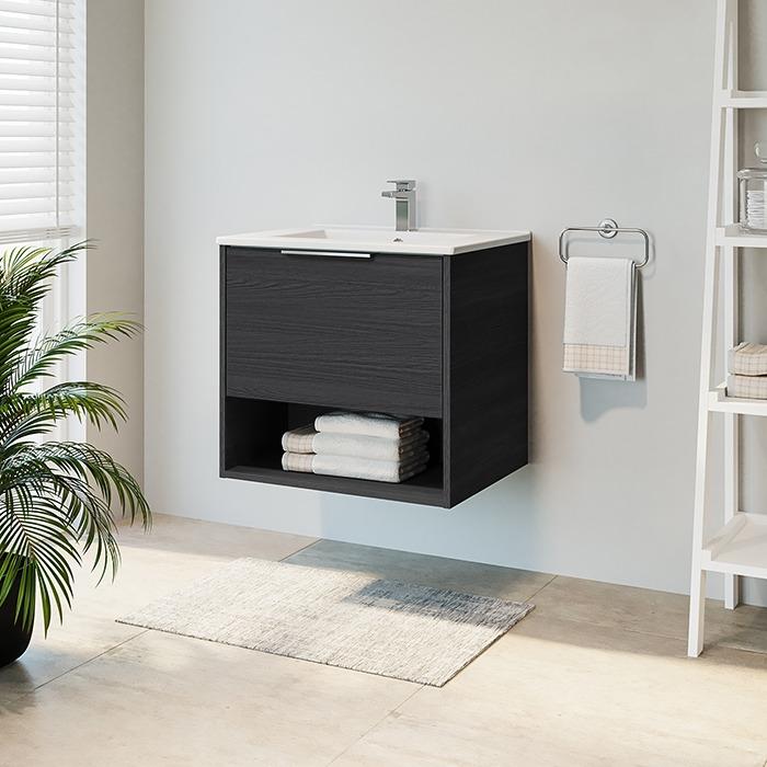 Pakabinama vonios spintelė su stalčiumi ir atvira niša. Spintelė parduodama kartu su praustuvu. Sifonas ir vandens maišytuvas į komplektaciją neįeina.