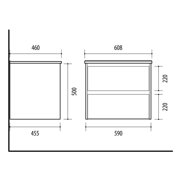 590 x 500 x 455 mm (plotis, aukštis, gylis)