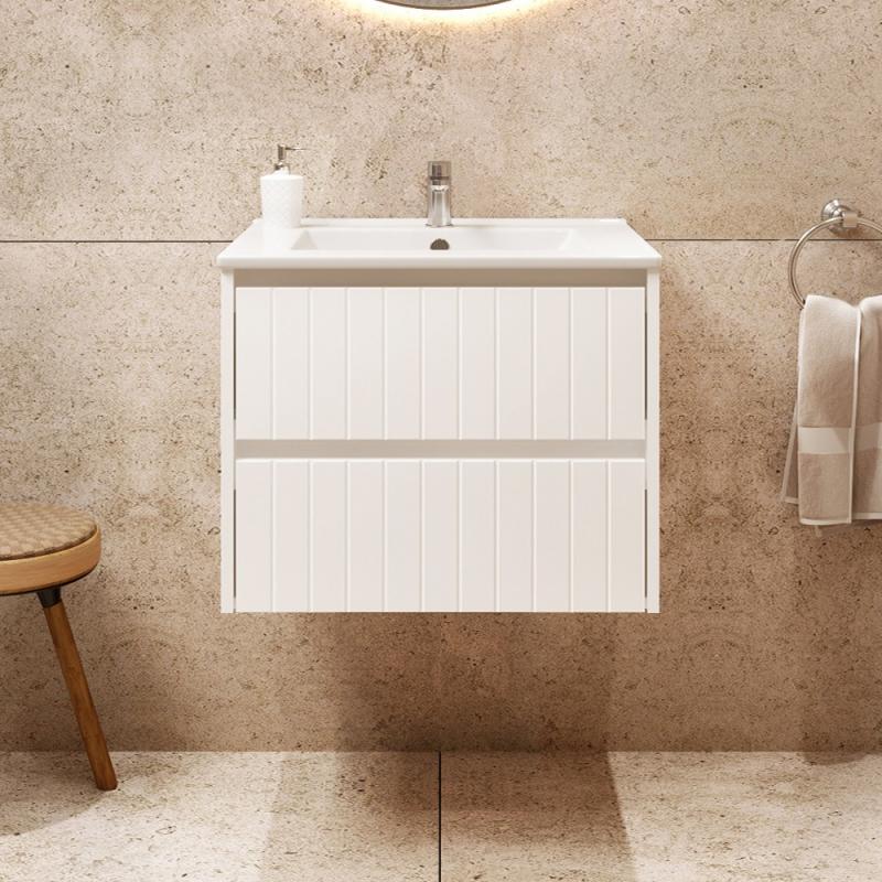 Balta spintelės spalva – tai gaivos ir švaros spalva, puikiai tinkanti vonios kambariui. Spalva yra matinė (30% blizgumo), o tai puikiai išryškina dailiai išfrezuoto fasado formą.