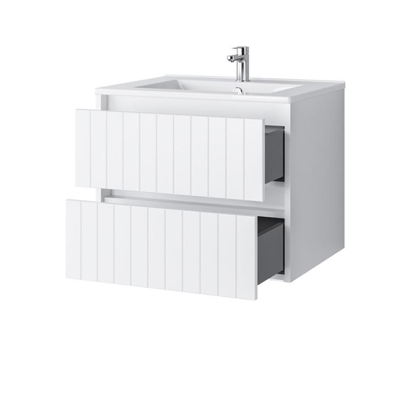 Pakabinama vonios spintelė su dviem tyliai-švelniai užsidarančiais stalčiais. Spintelė parduodama kartu su praustuvu. Sifonas ir vandens maišytuvas į komplektaciją neįeina.