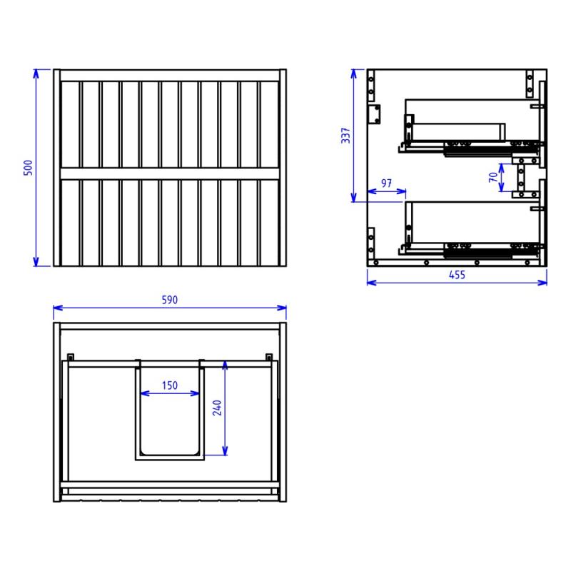 590 x 500 x 455 mm (plotis, aukštis, gylis)