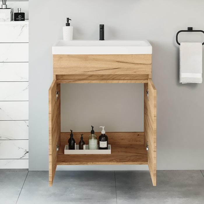 Estetiška ir funkcionali vonios spintelė sukurta komfortabiliam kasdieniam naudojimui. Minimalistinės šios spintelės formos leidžia ją pritaikyti įvairaus stiliaus interjere.