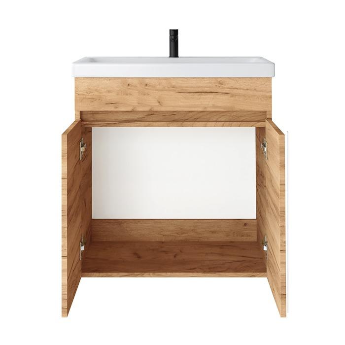 Pakabinama vonios spintelė su dviem durelėm. Spintelė parduodama kartu su praustuvu. Sifonas ir vandens maišytuvas į komplektaciją neįeina.