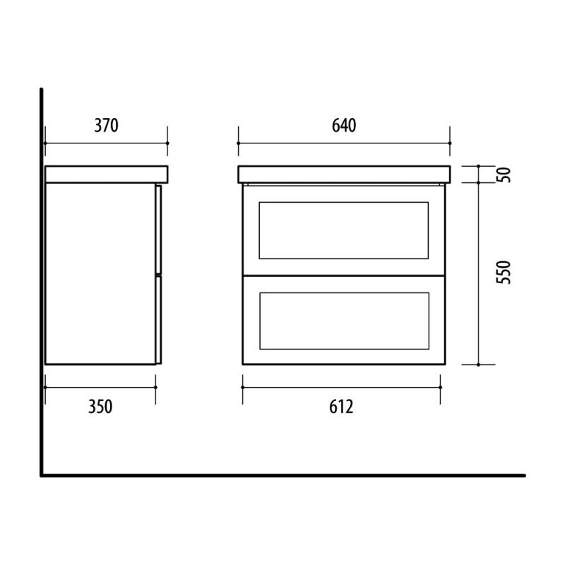612 x 550 x 350 mm (plotis, aukštis, gylis)