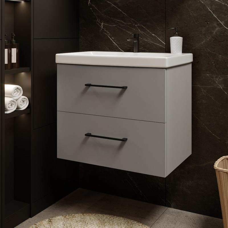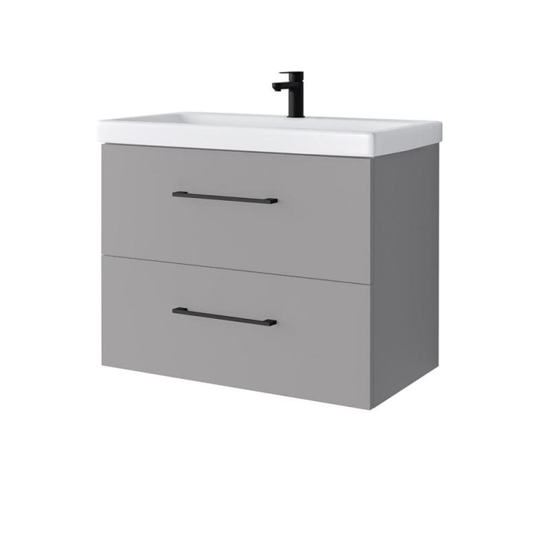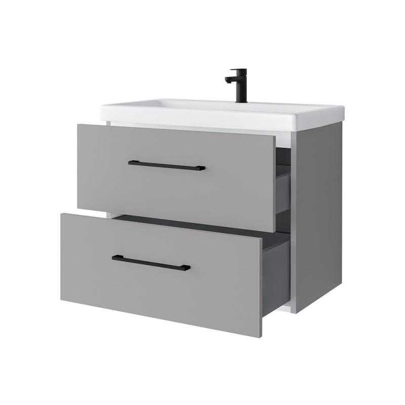 Pakabinama vonios spintelė su dviem stalčiais. Spintelė parduodama kartu su praustuvu. Sifonas ir vandens maišytuvas į komplektaciją neįeina.