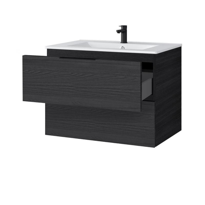 Spintelėje įmontuoti du stalčiai su švelnaus uždarymo bėgeliais. Šią baldų furnitūrą ne tik malonu naudoti – ji taip pat pasižymi ilgesniu naudojimo laikotarpiu, lyginant su įprasta furnitūra. Tai ypač svarbu, nes vonios baldai yra intensyviai eksploatuojami, todėl privalo būti patvarūs.