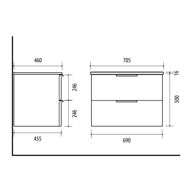 705 x 175 x 460 mm (plotis, aukštis, gylis)