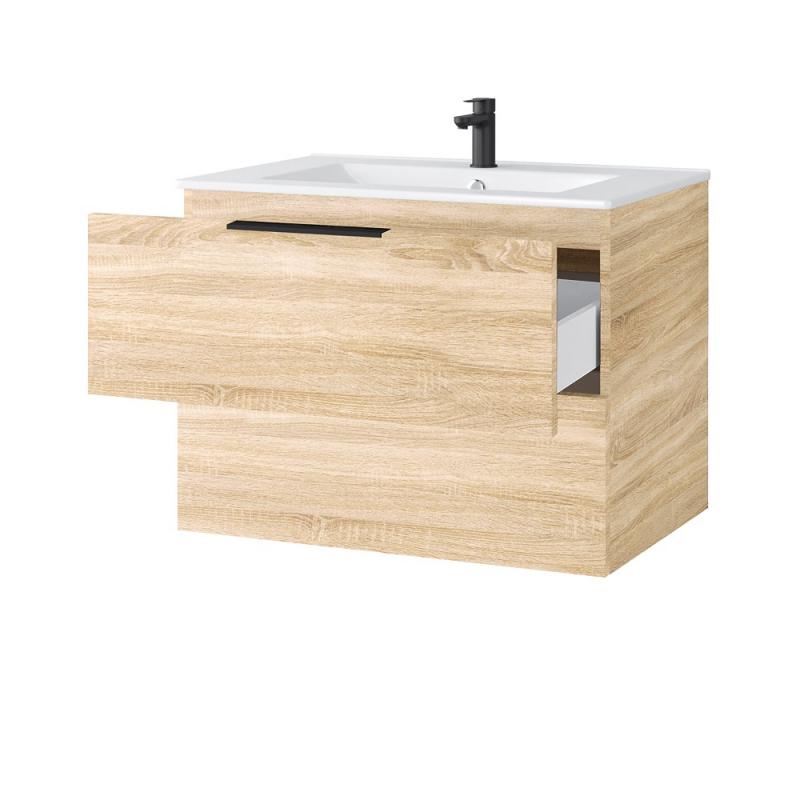 Spintelėje įmontuoti du stalčiai su švelnaus uždarymo bėgeliais. Šią baldų furnitūrą ne tik malonu naudoti – ji taip pat pasižymi ilgesniu naudojimo laikotarpiu, lyginant su įprasta furnitūra. Tai ypač svarbu, nes vonios baldai yra intensyviai eksploatuojami, todėl privalo būti patvarūs.