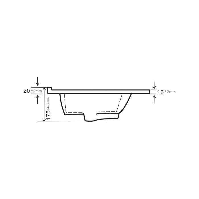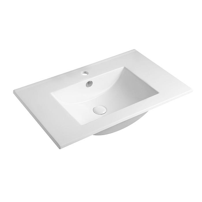 Šiuolaikiškos formos keraminis praustuvas su persipylimo kanalėliu ir paaukštinta briauna prie sienos