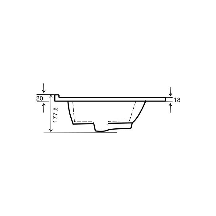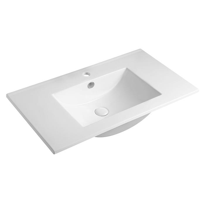 Šiuolaikiškos formos keraminis praustuvas su persipylimo kanalėliu ir pakelta briauna prie sienos