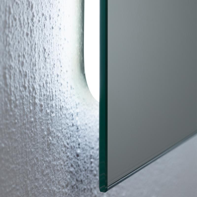 Stilingas ir elegantiškas MINI serijos veidrodis puikiai tinka nedidelėms erdvėms ir stilizuojant interjerą keliais veidrodžiais. Išilginto stačiakampio forma vizualiai suteiks aukštesnės erdvės įspūdį. Foninio ambient LED apšvietimo funkcija suteikia aplinkos švytėjimą, kuris yra ne tik estetiškas, bet ir funkcionalus vonios patalpoms. Liečiamas sensorius su šviesos intensyvumo bei temperatūros dimavimu – puikus sprendimas bei galimybė susikurti tiek jaukų ir romantišką apšvietimą vakariniams SPA ritualams, tiek aktyvų ir ryškų – rytinėms higienos procedūroms. Šis veidrodis turi IP44 reitingą, todėl jį saugu naudoti vonios kambaryje.