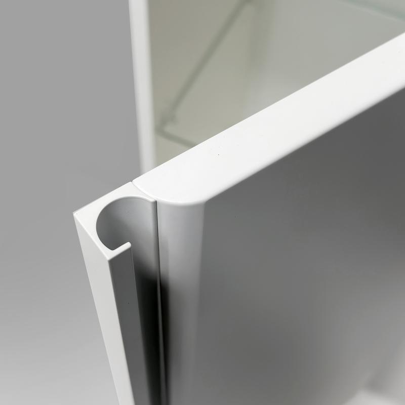 Ūkinėse spintelėse sumontuoti „Blum“ lankstai turi integruotą „Soft close“ stabdį švelniam uždarymui. Viduje sudėtos 4 mm storio stiklo lentynėlės patogiam daiktų laikymui.