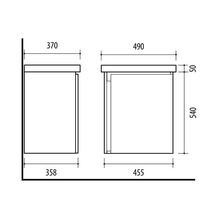 490 x 130 x 370 mm (plotis, aukštis, gylis)