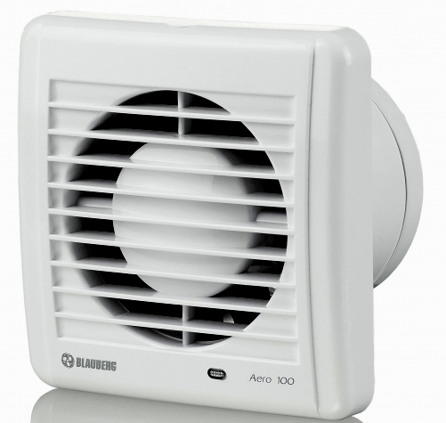 Ventiliatorius Blauberg AERO150T su laikmačiu, jungikliu ir atbuliniu vožtuvu.