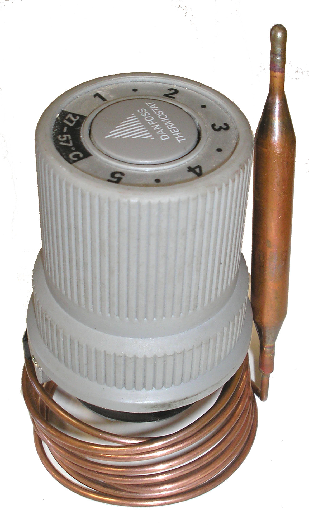 3-eigio vožtuvo termostatas be priglaudimo prie vamzdžio kaladėlės 20-50 °C, kapiliaras 150 cm.
