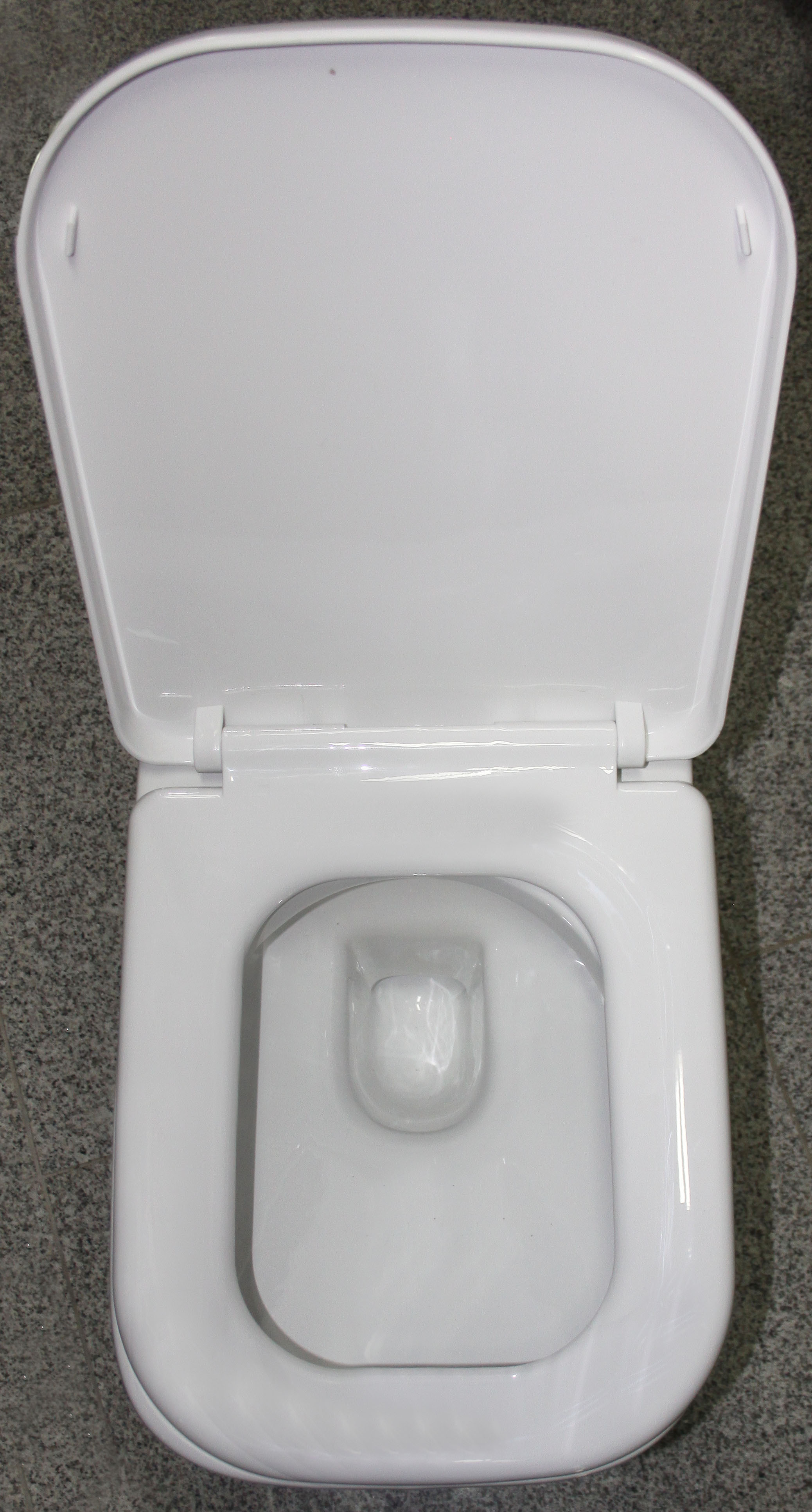 Pakabinamas klozetas su lėtai nusileidžiančiu dangčiu.